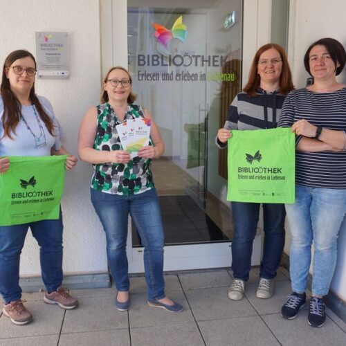 Die Initiative Bibliothek Liebenau überlegte, wie man die Bibliothek am besten sichtbar machen kann. Gemeinsam übernahmen das Team die Konzeption und Erarbeitung des Folders, das Design der Bibliothekstaschen mit neuem Logo sowie die Gebäudebeschriftung und Beschilderung.
