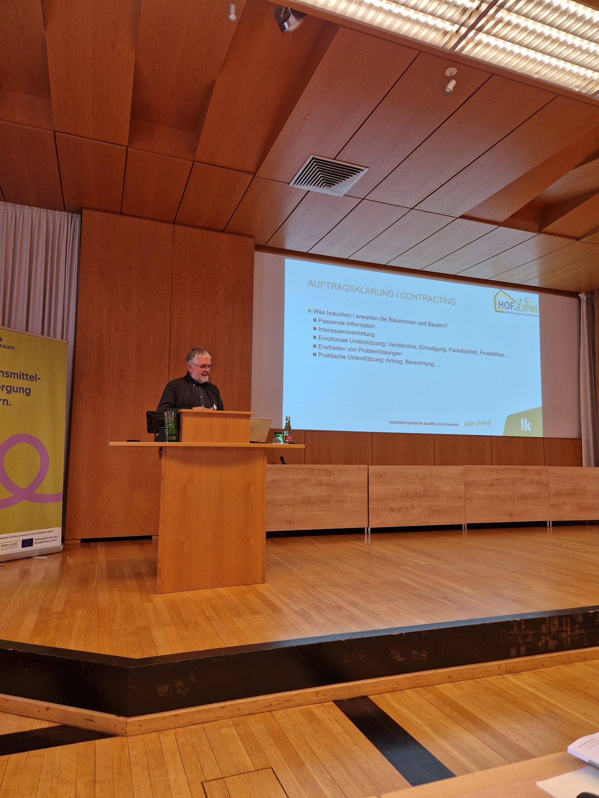 Josef Stangl, Berater bei HOF.Leben, erläuterte die Handlungsspielräume und Abgrenzungsmöglichkeiten von Berater:innen: Was kann tatsächlich beeinflusst werden, was übersteigt meine Beratungskompetenz und wie gelingt der Zugang zu den Gesprächspartner:innen?