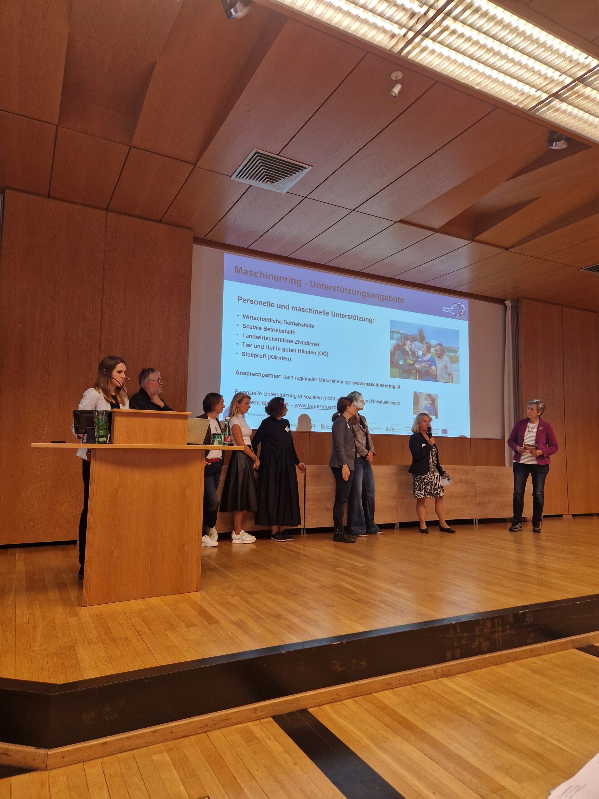 Ein besonderer Höhepunkt der Veranstaltung war die erstmalige Präsentation der GAP-Evaluierungsstudie „Soziale und psychische Belastungen der österreichischen Land- und Forstwirt:innen und die Bedeutung von Unterstützungsangeboten zur Verbesserung der bäuerlichen Lebensqualität“, die im Auftrag des BMLUKs von L&R Sozialforschung erstellt und von Projektleiterin Nadja Bergmann vorgestellt wurde. Die Studie verdeutlicht die vielfältigen Herausforderungen, denen Land- und Forstwirt:innen gegenüberstehen: von körperlichen und psychischen Belastungen über soziale Schwierigkeiten bis hin zu wirtschaftlichen Unsicherheiten. Faktoren wie klimabedingte Ernteausfälle, steigende Preise, fehlende Arbeitskräfte und Nachfolger:innen erschweren den Alltag zusätzlich.