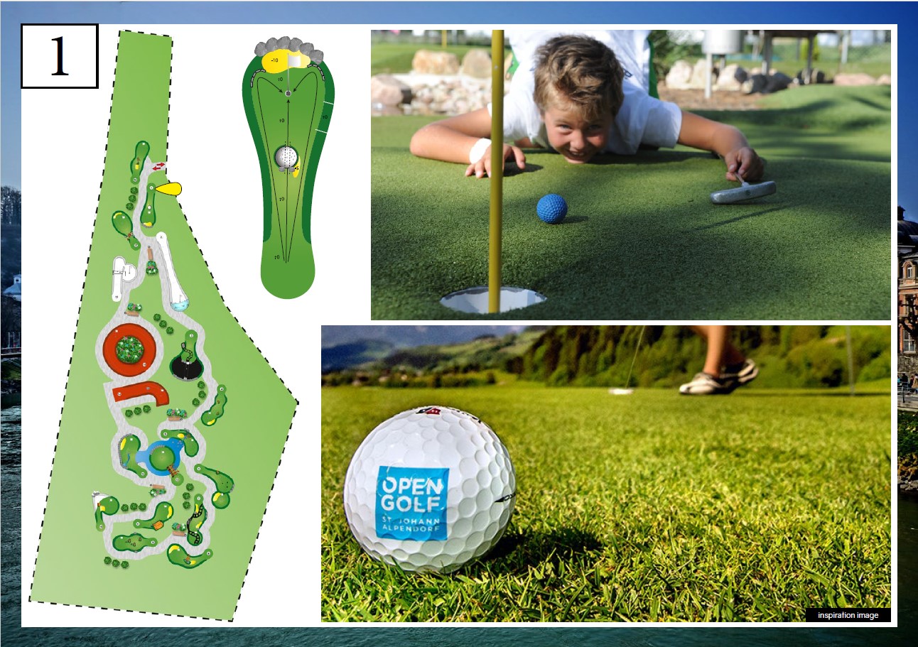 Konzeptionell soll die barrierefreie „Adventure Golf“- Anlage an die Strategie des Tourismusortes St. Johann im Pongau angelehnt sein und stellt neben den Sommer und Winteraktivitäten (Wandern, Biken, Golfen, Skifahren) ein attraktives ergänzendes Angebot dar.