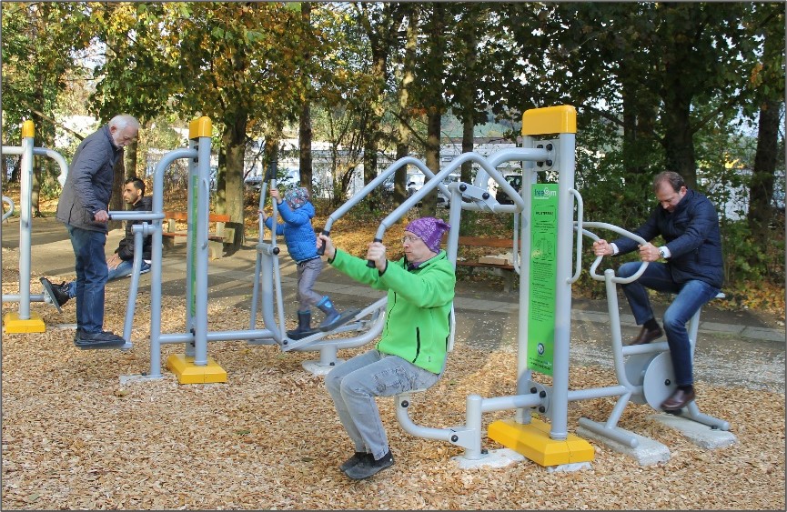 - Gemeinsam mit der Firma FreeGym wurden die Geräte besprochen und der Standort besichtigt, zehn Geräte wurden bestellt