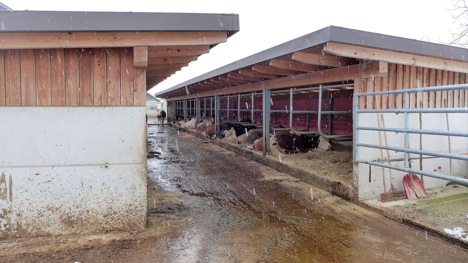 wurde die bisher in der Fachliteratur nicht beschriebene, seitens der Projektgruppe aber als mögliche eigenständige Haltungsform identifizierte Ausgestaltung des Auslaufs zu einem „open air“ Laufstall als möglicher Entwicklungsschritt weg von der Anbindehaltung hin zur Laufstallhaltung erkannt. Die aufgrund ihrer Merkmale als „Auslaufstall“ betitelte Haltungsform wurde in einer Tischvorlage beschrieben als eine Form der Auslaufausgestaltung, die sämtliche Elemente eines Laufstalles beinhaltet und bei der der bestehende Anbindestall lediglich noch bei besonderes widrigen Witterungsumständen beziehungsweise zum Melken verwendet wird.
