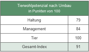 Das Maß an Tierwohl hängt von zahlreichen Faktoren ab. Anhand folgender Teilbereiche des FarmLife-WelfareIndex wurde Tierwohl auf den Projektbetrieben quantifiziert: