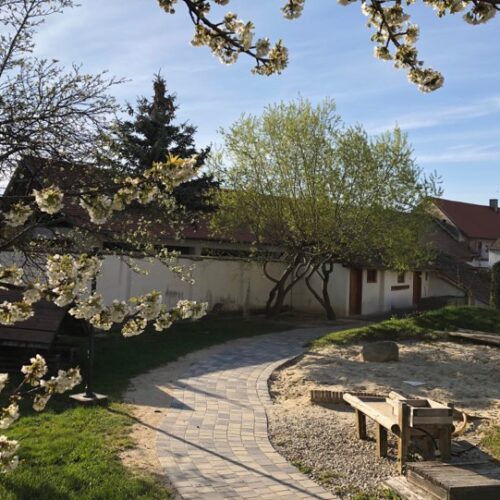 - Angebote zur Nutzung der großen Gartenanlage – ein eigener kleiner Motorikpark dient der Fitness