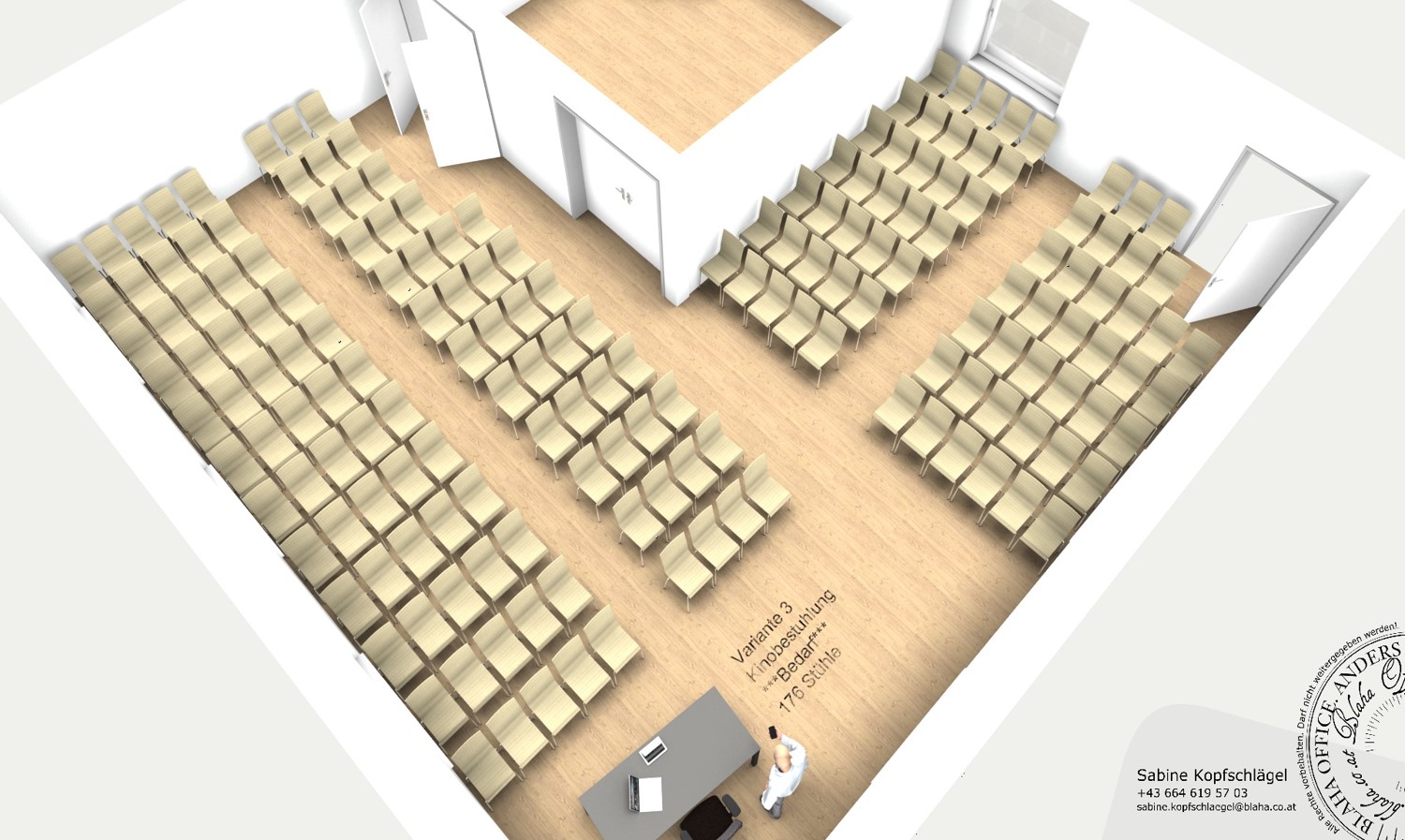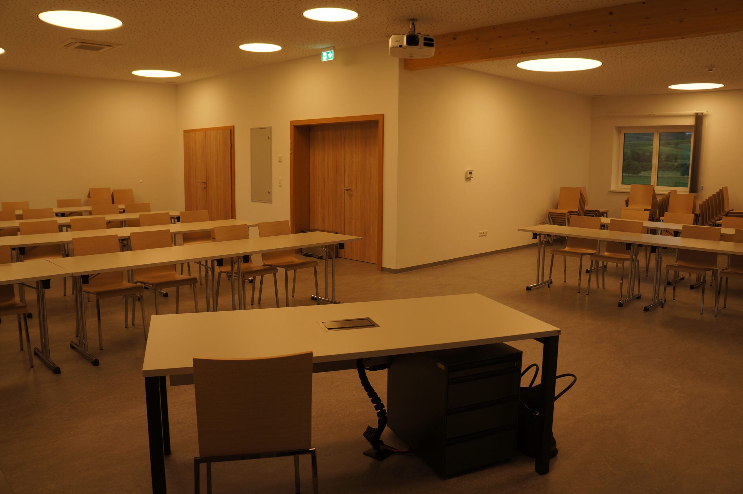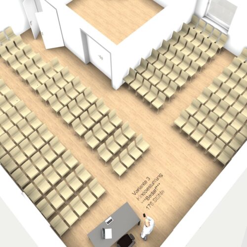 Anschaffung von Beamer, Leinwänden und / oder Präsentationssystemen; Je nach Bedarf Raumteiler, Verdunkelungsvorhang, Beleuchtung; Anschaffung von Mobiliar (Sessel, Tische); eventuell Tonanlage, Verkabelung; Internetanbindung, WLAN; Software, Laptop