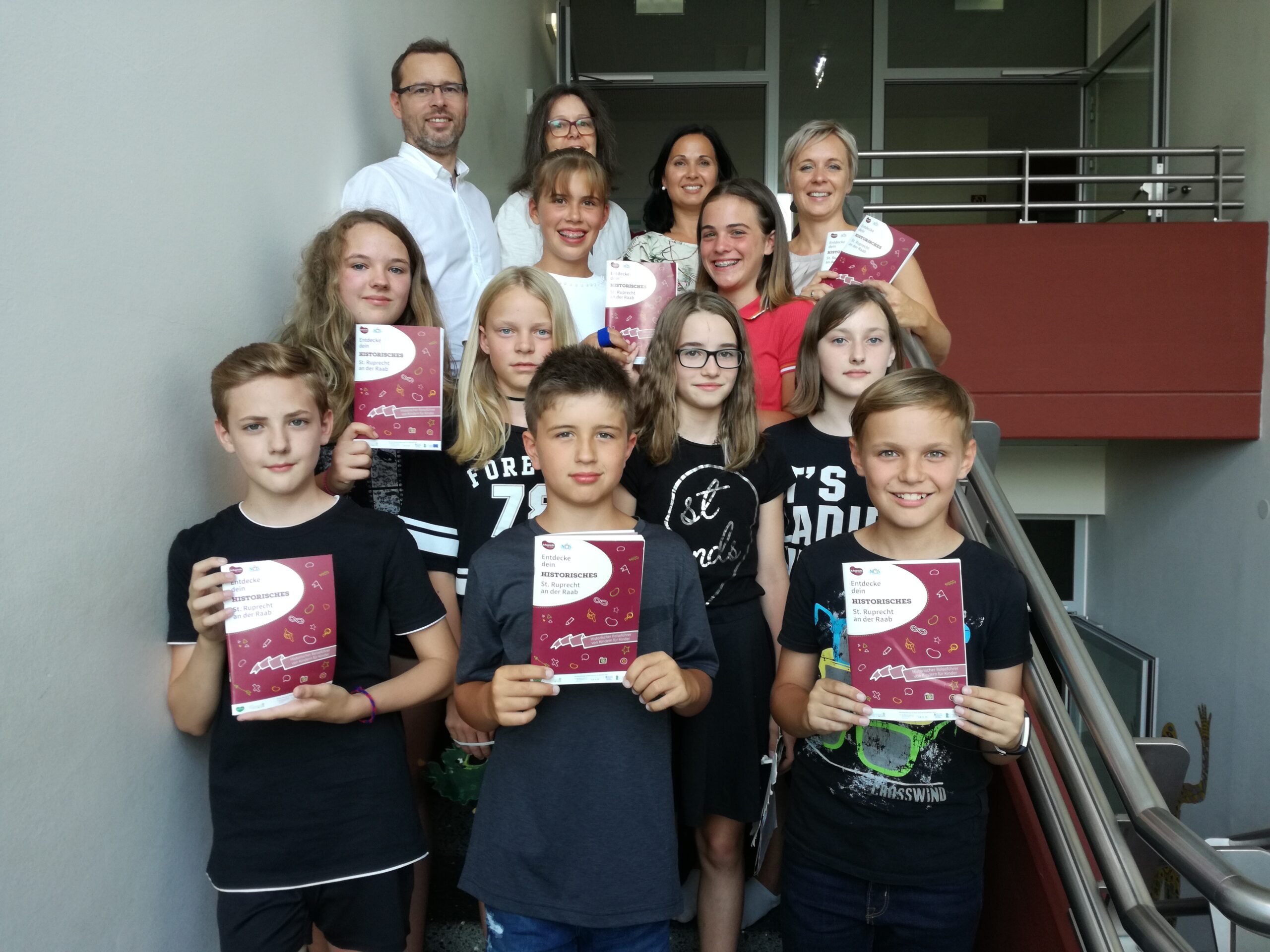 Abschließend wurden im Rahmen einer Schulveranstaltung der NMS St. Ruprecht/Raab am 4. Juli 2019 den rund 200 Personen (unter anderem Schülerinnen und Schüler, Lehrerinnen und Lehrer, Presse, Vertreterinnen und Vertreter der Marktgemeinde, Tourismusverband) die Projektergebnisse präsentiert. Im Rahmen der Vorstellung wurden die Broschüre präsentiert und verteilt, die Homepage vorgestellt sowie auf die Info-Tafeln im Ort aufmerksam gemacht. Grundsätzlich sind die Broschüre, die Inhalte auf der Homepage und die Info-Tafeln von Kindern für Kinder gestaltet. Aber auch alle Erwachsene können Wissenswertes über die Geschichte der Marktgemeinde St. Ruprecht an der Raab für sich mitnehmen.