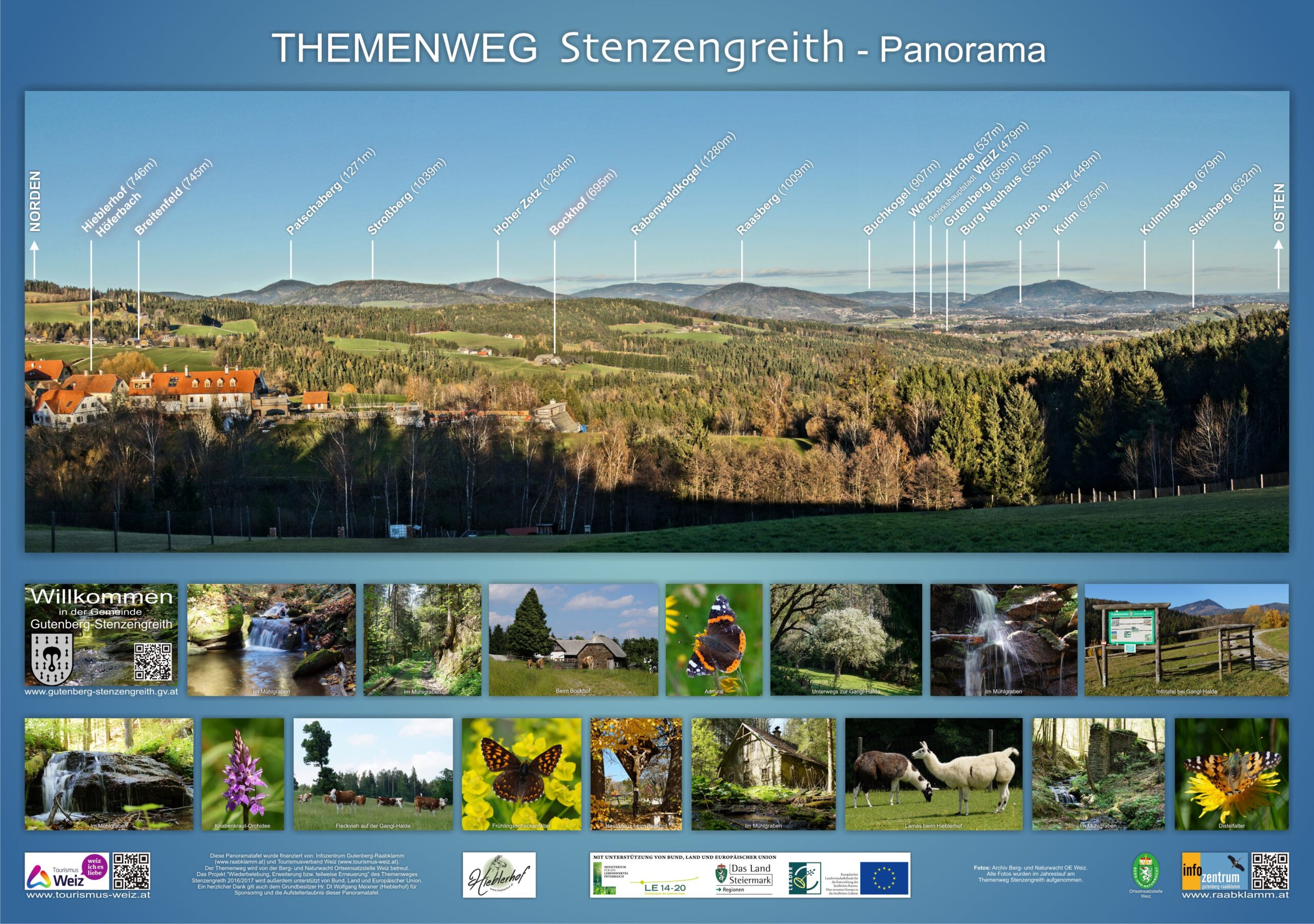 Der nicht mehr nutzbare Themenweg in der ehemaligen Gemeinde Stenzengreith soll durch einen neuen Themenweg adäquat ersetzt werden. Der neue „Themen- und Wasserweg Gutenberg-Stenzengreith“ bietet den Wanderern mittels einer Wanderstrecke durch Wiesen-, Weiden- und Waldlandschaften und Aussichtspunkten zu Schöckl, Kulm und Riegersburg ein einzigartiges Erholungserlebnis.