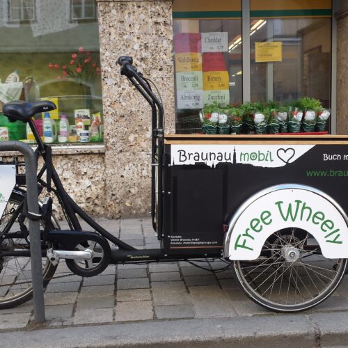 - Das Lastenrad muss unter www.braunaumobil.at im Vorfeld gebucht werden. Das Rad kann dann beim Zagler´s Naturkostladen, Salzburger Vorstadt 26, abgeholt werden. (Braunauer Innenstadt).