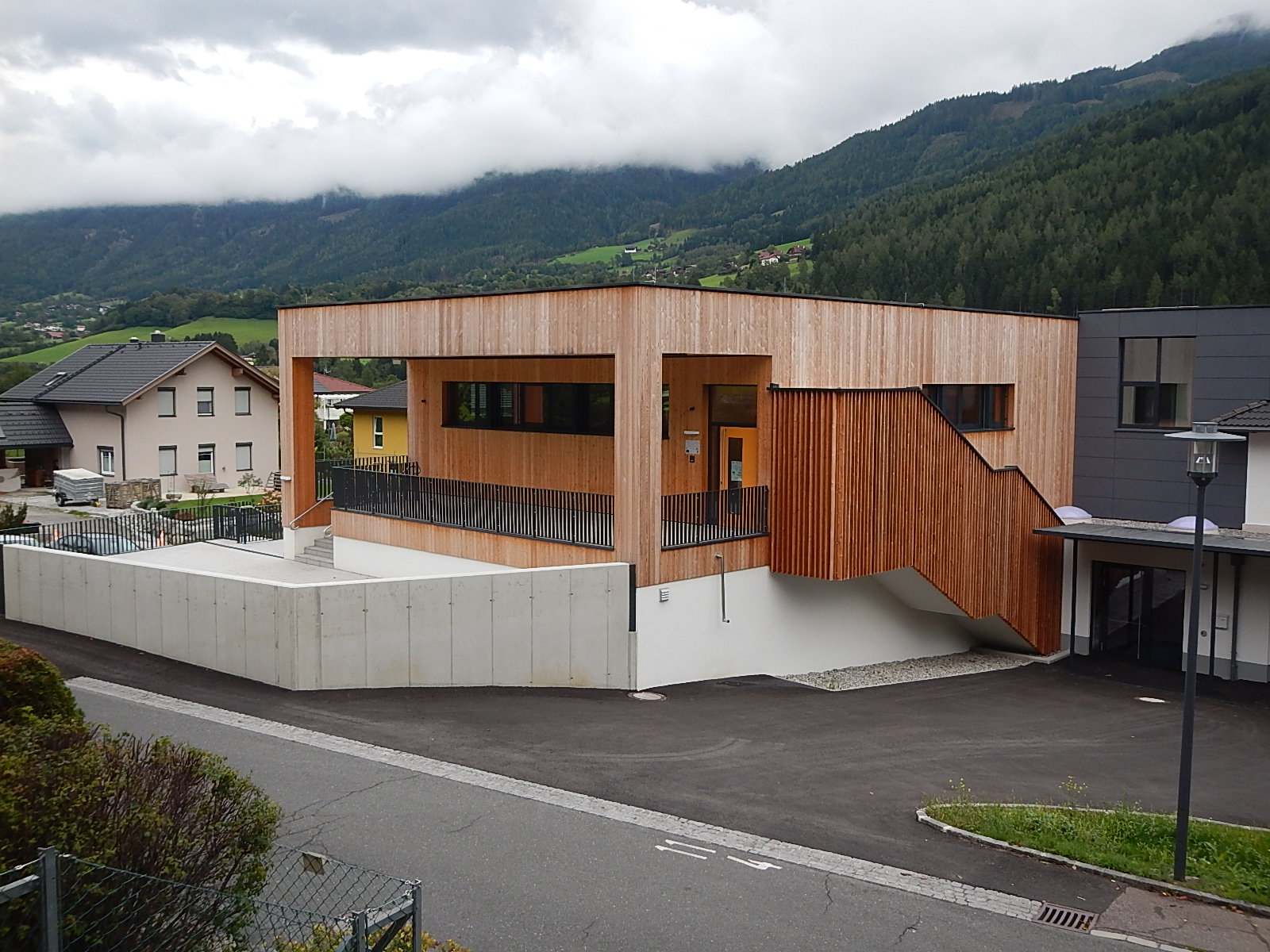 Baulich:Bei der Volksschule Trebesing wird der Turnsaal um eine Etage aufgestockt und auf dieser neugewonnen Fläche finden zwei Kindergartengruppen (bis zu je 25 Kinder) Platz. Der Dachboden des Schulgebäudes wird als Rückzugs-/Ruheraum adaptiert und so bestehende Bausubstanz mitgenutzt.