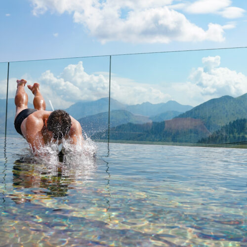 Auf einer außergewöhnlichen Location errichtete die Riesneralm eine besondere Attraktion, die im Alpenraum als Unikat gesehen werden kann. In Anlehnung an ein seinerzeitiges Freibad in Donnersbachwald in den 1950-er Jahren, wurde am Gipfel der Riesneralm auf 1900 m Seehöhe ein Schwimmbad errichtet. Das Erscheinungsbild mit viel Holz ist jenem aus den 50-er Jahren sehr ähnlich. Ein 360° Panoramablick in die Bergwelt der Niederen Tauern und an der Südseite eine horizontfreie Spiegelung der Wasserfläche mit den Bergspitzen, versetzt den Badegast in ein atemberaubendes Feeling.