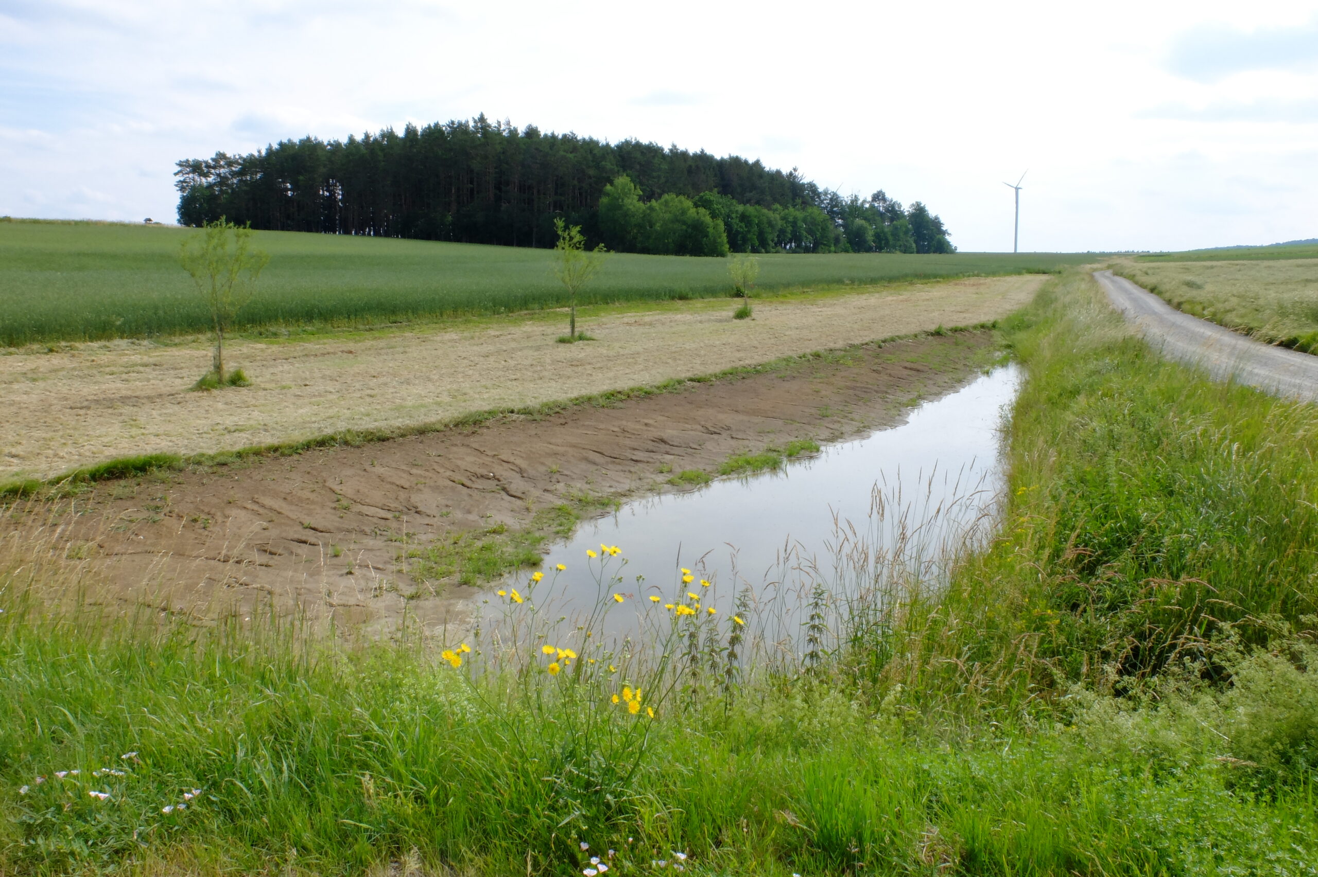 Bereitstellung von insgesamt 4,6 Hektar (ha) Grundflächen für 25 Anlagen im Rahmen eines 340 ha großen Zusammenlegungsverfahrens für die planmäßige Schaffung von grüner Infrastruktur im öffentlichen Interesse. Diese Flächen werden damit aus der Produktion genommen und zu naturnahen Vernetzungs- und Rückzugsstrukturen gestaltet.