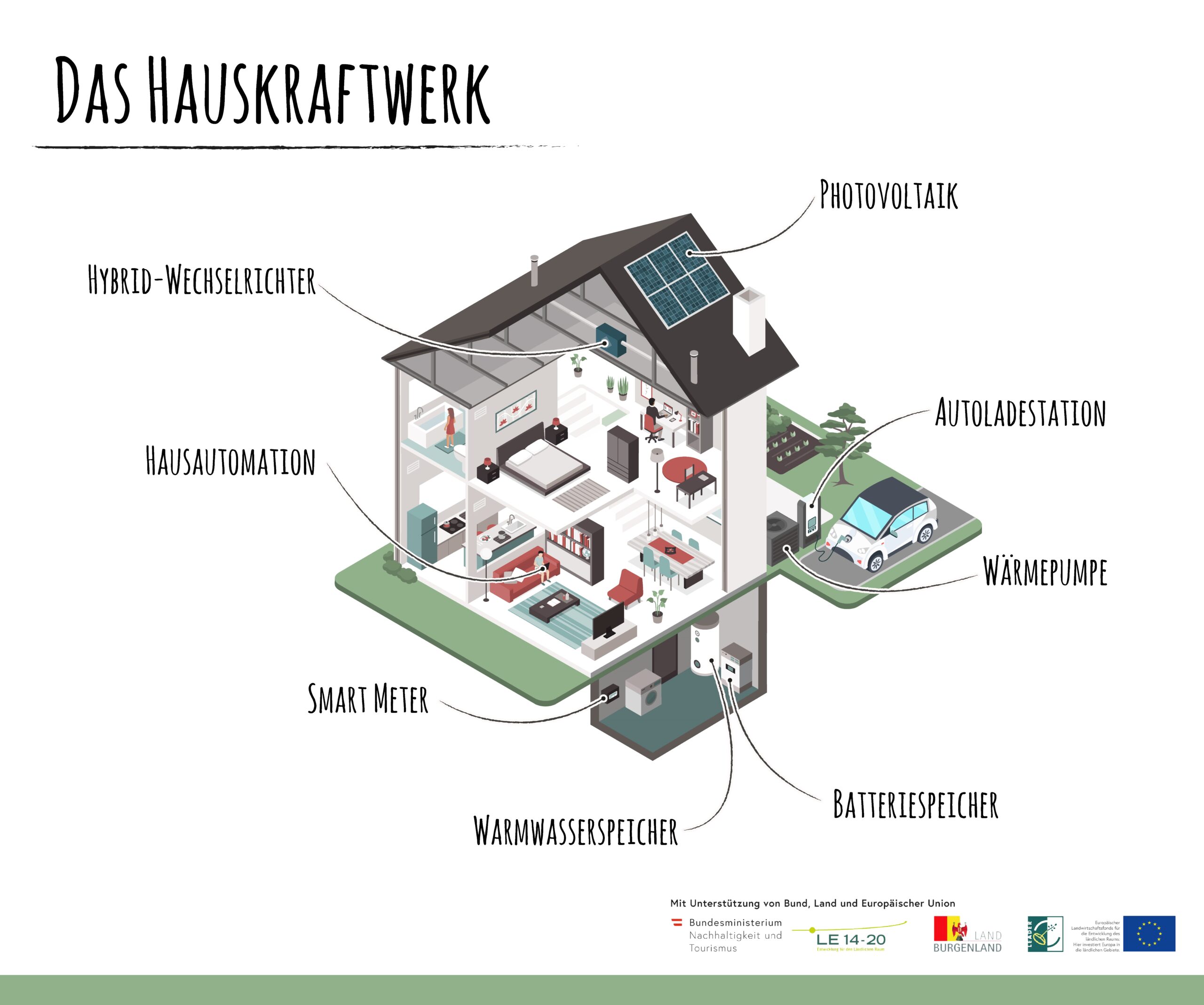 Die Entwicklungen im Bereich Erneuerbaren Energie sind gewaltig. Der Einsatz in privaten Haushalten hingegen hinkt dieser Entwicklung stark hinterher. Die Fülle an Möglichkeiten zur nachhaltigen Energieproduktion in den eigenen vier Wänden und die Vielzahl an bestehenden Produkten überfordert die Konsumentinnen und Kosumenten. Es braucht dringend einen Wegweiser durch die einzelnen Systeme und Kombinationen, um das Eigenheim zu einem Haus-KRAFTWERK auszubauen.