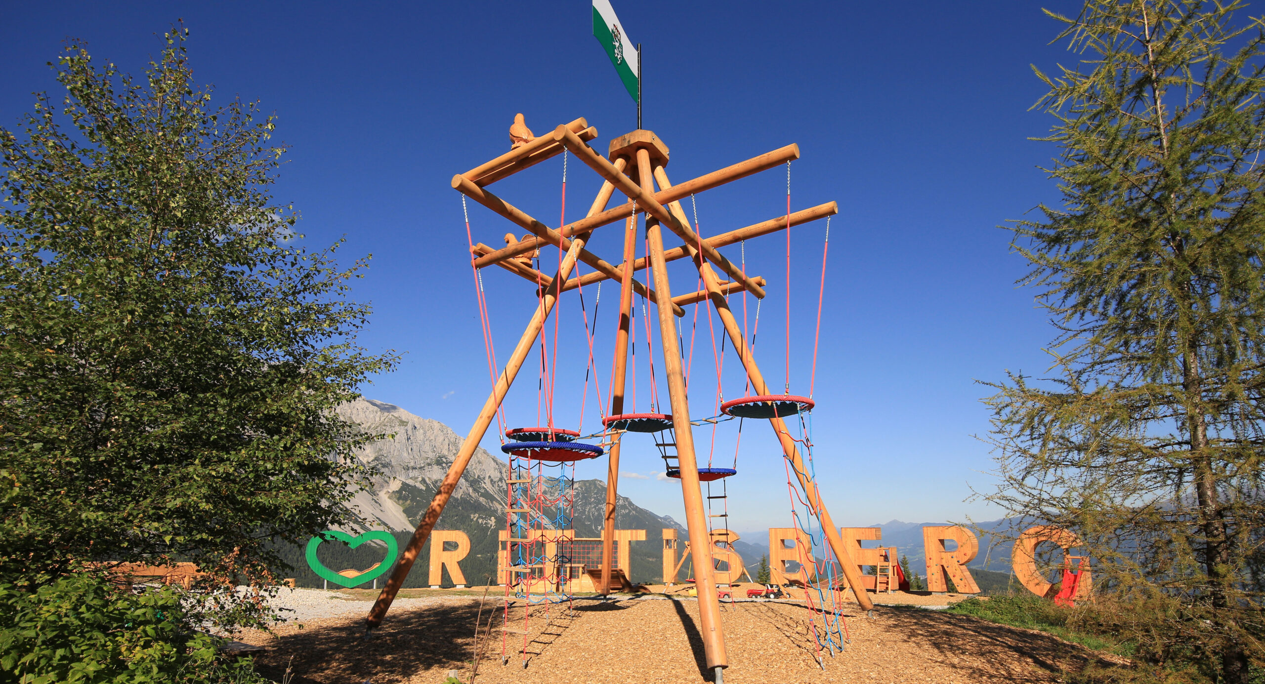 Errichtet wurde der Höhenspielplatz “I LOVE RITTISBERG” als 3 Meter hoher Schriftzug aus Vollholz, wobei jeder Buchstabe eine unterschiedliche Nutzung erfährt: Rutsche, Schaukeln, Kletterwand, Kletternetz sowie Aussichtspunkte. Einstweilen die Kinder spielen, können ihre Eltern in bequemen Liegen, die direkt vor dem Spielplatz aufgestellt sind, relaxen. Genutzt werden soll die Anlage nicht ausschließlich als Kinderspielplatz, sondern auch als Fotopoint für Gäste und als Imagewerbung vor Ort.Das Projekt dient zur optimalen Ergänzung des bereits bestehenden Angebots und nach diesem Kriterium wurde auch der Standort ausgewählt. In unmittelbarer Nähe zur Bergstation der Sesselbahn und direkt am Ende des Märchenwanderweges ist der Höhenspielplatz Belohnung für den Aufstieg, den kleine Wanderer auf sich genommen haben.