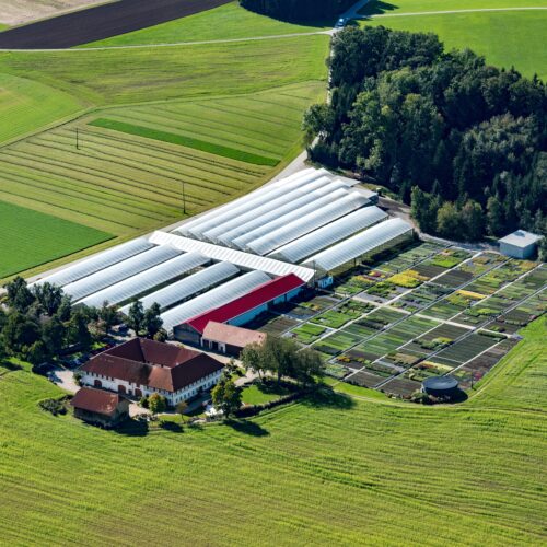 - Die Betriebsfläche gliedert sich in 1 ha Folienhausfläche, 1 ha Freilandstellfläche und einer Logistikhalle mit 700 m².