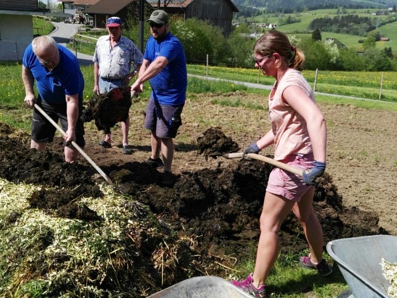 Workshop „Wie kompostiere ich richtig“ Samstag, 28. April 201825 Personen aus Thal und der Umgebung nahmen zum Start des Projektes am Workshop „Wie kompostiere ich richtig“ teil. Die Grundausbildung startete mit einem theoretischen Input und endete mit dem praktischen Teil am Kartoffelacker. Beim praktischen Workshopteil wurde eine Kompostmiete angelegt. Bei diesem Workshop wurde auch die Kompostiergemeinschaft gegründet. Ein Infoschild zum Thema „Rasenschnitt als Dünger“ wurde beim Grünmüllcontainer installiert. So wurde direkt bei der Entsorgungsstelle für den wertvollen Rasenschnitt sensibilisiert.