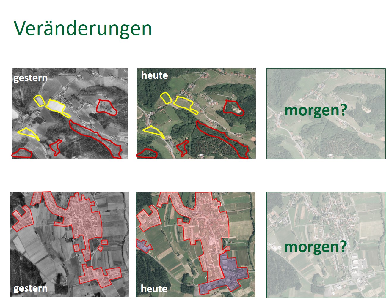 - Schaffen von Verständnis für räumliche Entwicklungen und Veränderungen durch geänderte Landnutzungen bzw. neue infrastrukturelle Voraussetzungen
