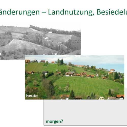 - Bei den Veranstaltungen wurden die landschaftsräumlichen Besonderheiten je Großlandschaft (Bergland, Hügelland, Tallandschaft) anhand von Fotos präsentiert, die Veränderungstrends der letzten Jahrzehnte anhand ausgewählter Zahlen, Daten und Fakten erläutert