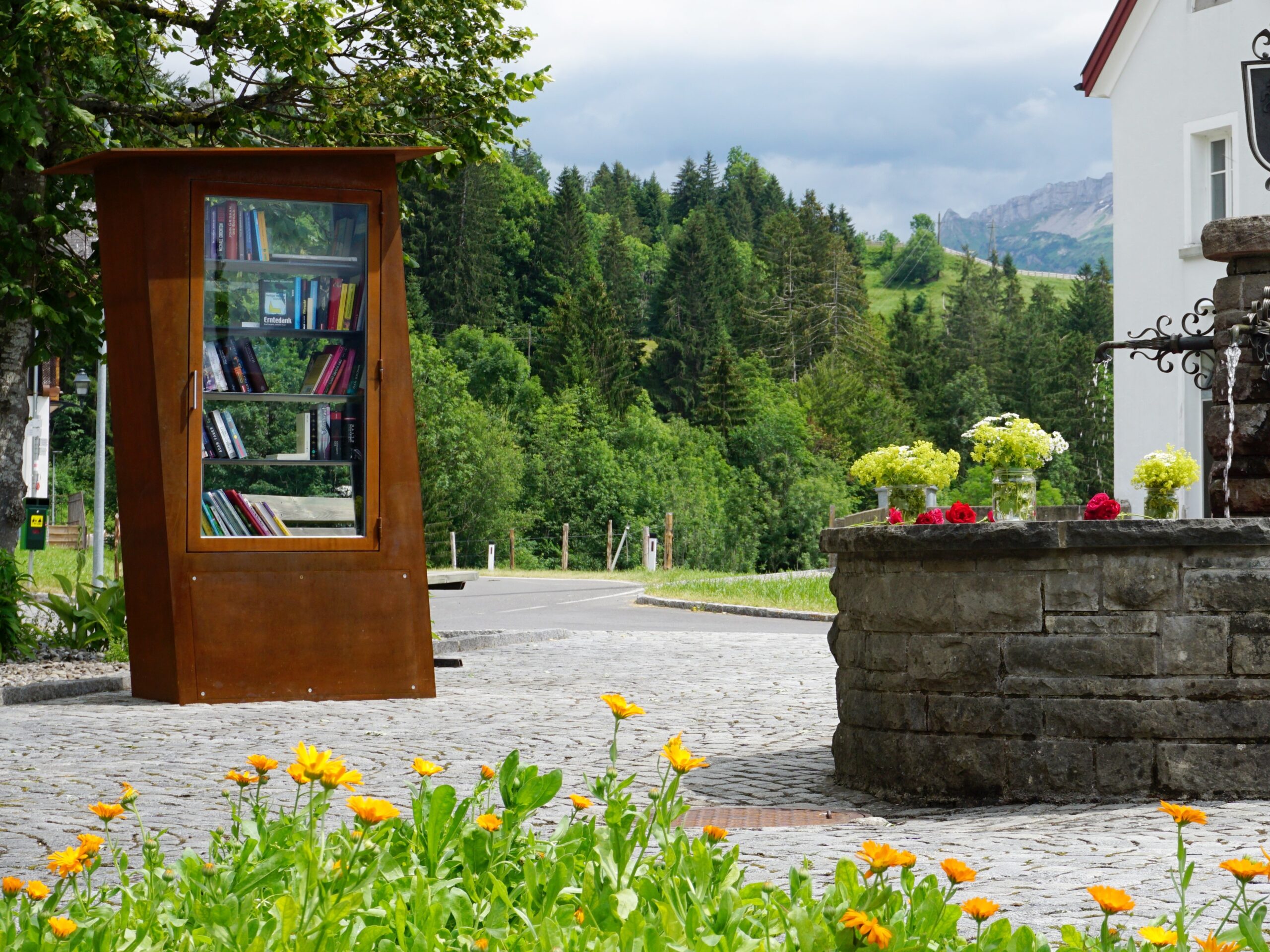 Wir Alle wollen mehr davon! Das Lese-Café zur Eröffnung des Buchkastens am Dorfplatz überraschte und kann durchaus wiederholt werden.