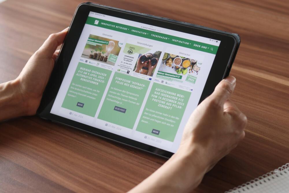 Die Bildungsmaßnahmen greifen weiterhin aktuelle Trends auf: Acht Ideenacker-Webinare mit Praxisbeispielen sowie acht Farm Up Talk Podcasts vertiefen die Inhalte. Informationsmaterialien wie 16 Trendradar-Newsletter, ein überarbeiteter Exkursionsleitfaden und aktualisierte Trendkarten unterstützen die Wissensvermittlung. Zusätzlich werden neue Bildungsprodukte wie Innovations- und Vernetzungstreffen sowie Ideenfindungs-Seminare konzipiert und pilotiert.