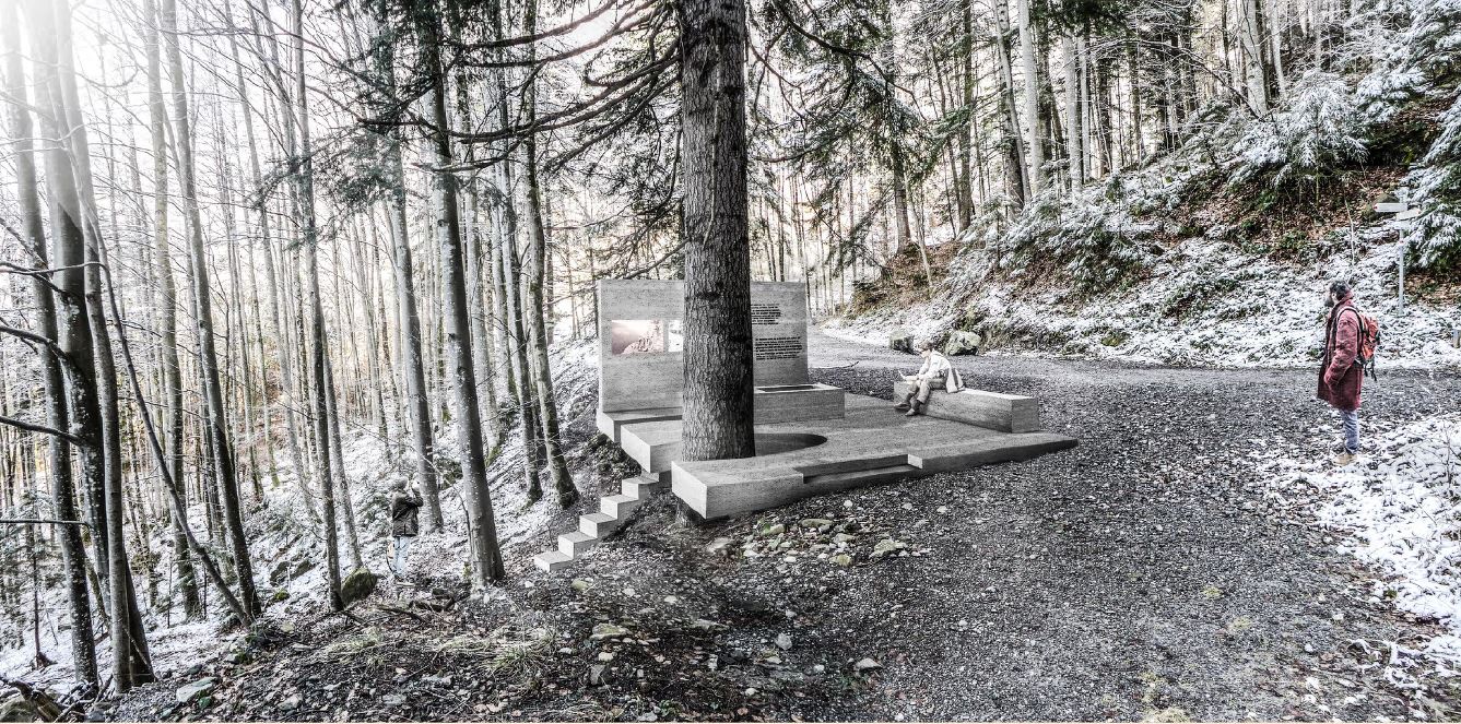 Am Standort der ehemaligen Masella Hütte soll das neue Kulturdenkmal entstehen. Dazu wird der Platz entsprechend vorbereitet, bei Bedarf eingeebnet, einzelne Bäume und Sträucher entfernt. Der Architekt Marte.Marte unterstützt das Projekt ehrenamtlich und optimiert die Planung des Denkmals, welches in Form einer Stampfbetonfläche (Flächengröße ca. 4 x 9 Meter) mit Treppenaufgang und zwei Seitenwänden entstehen soll. Der Architekt übernimmt die Bauleitung und beaufsichtigt die Baumeister- und Schlosserarbeiten. Um die kulturelle Geschichte anschaulich zu präsentieren wird eine Beschilderung an der Seitenwand angebracht. Hierfür erfolgt in enger Zusammenrabeit mit dem Kulturverein Dafins eine inhaltliche sowie grafische Ausarbeitung, der Druck wird in Auftrag gegeben. Nach Fertigstellung werden alle BürgerInnen zur großen Eröffnungsfeier eingeladen.