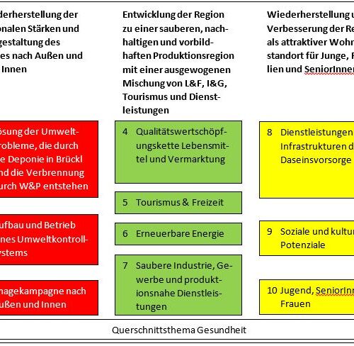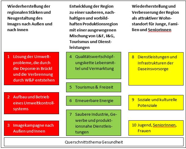 (1) Wiederherstellung der regionalen Stärken und Neugestaltung des Images der Region nach Innen und Außen.