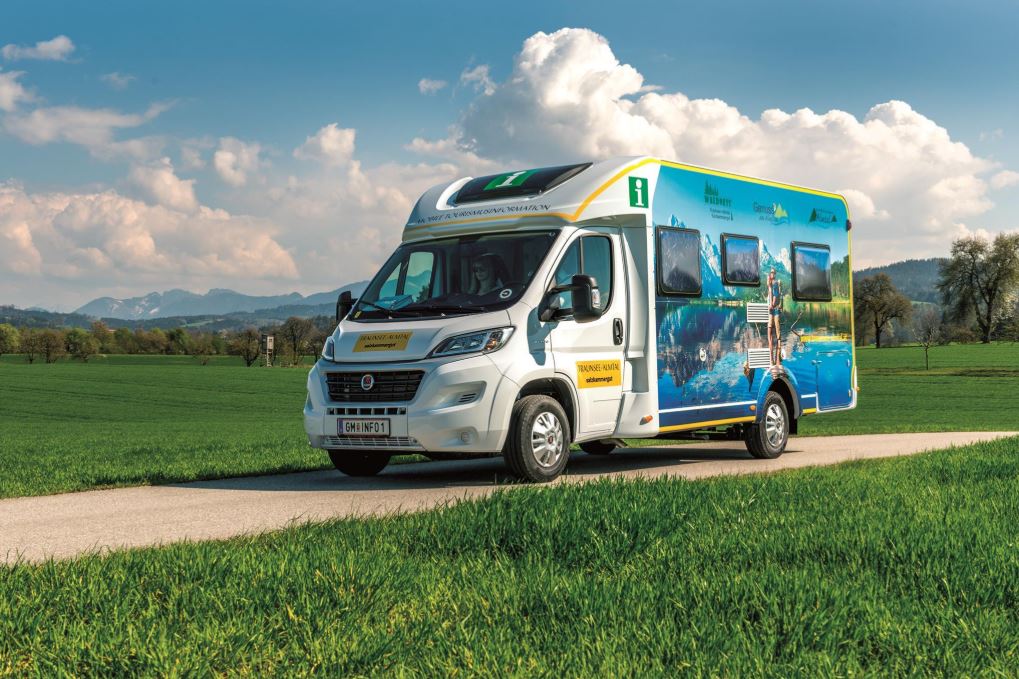 Im Zuge dieses Projektes wurde ein optimales Fahrzeug angeschafft. Das Fahrzeug wurde mit einer auffälligen Folierung beklebt und ist somit ein echter „Eye-Catcher“. Fahren kann damit jeder, der einen B-Führerschein besitzt. Die Mitarbeiter, welche damit unterwegs sind, haben beim ÖAMTC ein Fahrtraining absolviert. Zusätzlich wurde das Fahrzeug mit einer Markise, Drucker, Laptop, Internetanbindung und einem kleinen TV ausgestatten, damit bei einer geringen Frequenz im Innenraum gearbeitet werden kann. Für die BesucherInnen wurden ein Messestand, Beachflags und Regis-Sessel mit Traunsee-Almtal Logo angeschafft. Es ist genug Stauraum vorhanden, um die Außenmöbel und die Prospektständer unkompliziert zu verstauen. Für die technische Einrichtung im Innenraum wurden Sicherheitsvorrichtungen installiert, damit einem sicheren Fahren nichts mehr im Weg steht. Zusätzlich ist das Fahrzeug mit einem Feuerlöscher und einem Verbandskasten ausgestattet.Ergebnisse und Wirkungen qualitativ