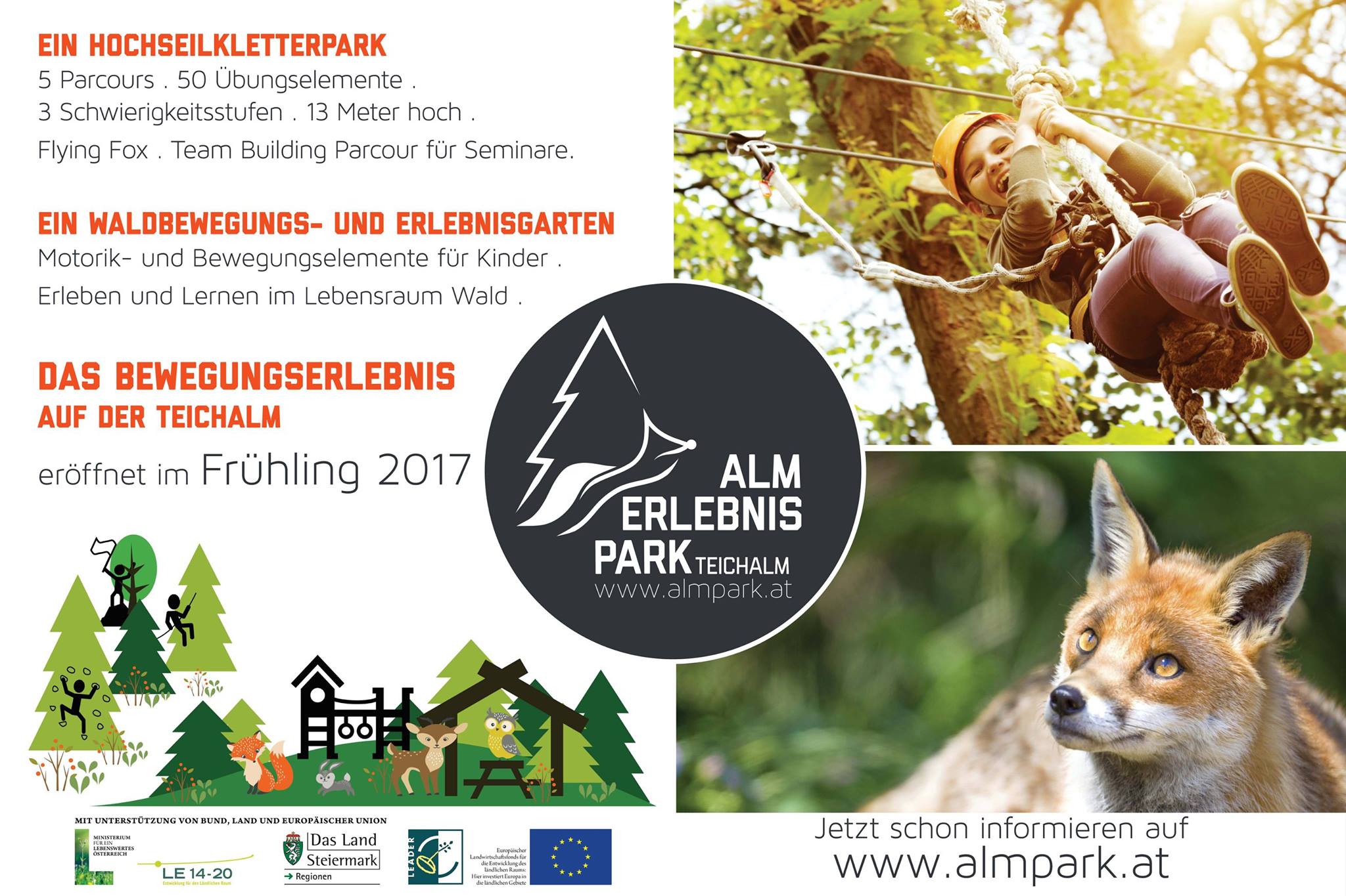 Im angrenzenden Bereich des Teichalmsees soll dieser neue „Almerlebnispark“ entstehen. Es dreht sich um ein Freizeitangebot im sportlichen, gesundheitlichen Bereich für die heimische Bevölkerung sowie auch für die Gäste der Region (Tourismus). Speziell im Nächtigungssegment erwartet man sich durch dieses neue Angebot neue Zielgruppen, die derzeit im Naturpark Almenland noch weniger anzutreffen ist.In den letzten 10-15 Jahren hat die Region, u.a. auch über das Leader-Programm, an Kletterinfrastruktur zwar aufgeholt, jedoch ist man als „Kletterhochburg“ im touristischen Sinne noch nicht bekannt. Daher möchte die Pierer Gastronomie GmbH sich dieser Thematik annehmen und in Abstimmung mit dem Naturpark, dem Tourismusverband, den umliegenden touristischen Infrastrukturen im Sommer wie im Winter, diesen Kletterparcours umsetzen.