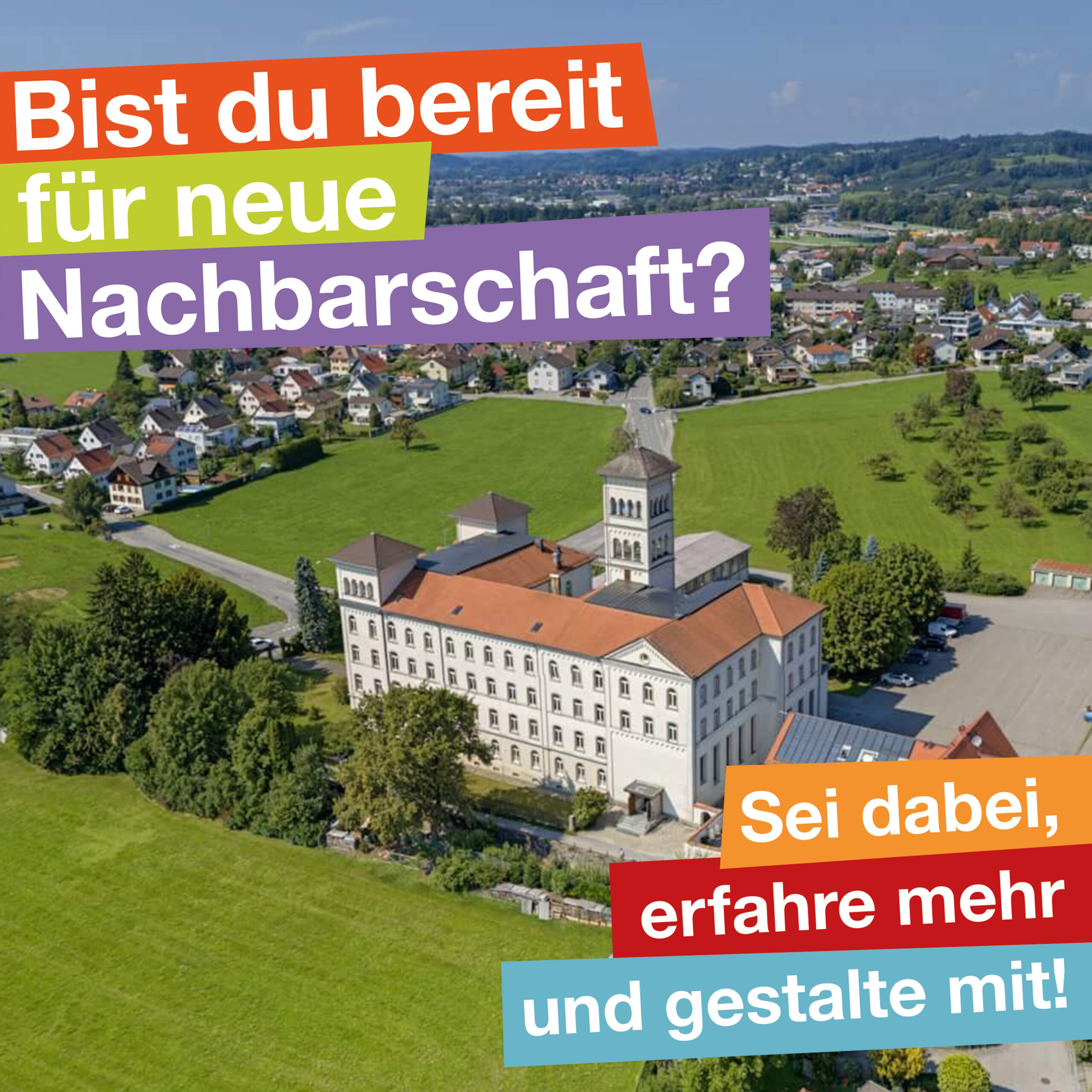 Weitere gut besuchte Sensibilisierungsangebote, speziell für Gemeinden, waren ein Vortrag, Exkursionen sowie Planspiele. Die Wanderausstellung „Neue Nachbarschaft“ macht das Thema gemeinschaftliches Bauen und Wohnen für die Bevölkerung zugänglich. Mit Veranstaltungen für verschiedene Zielgruppen hat das Projekt dazu beigetragen, Erfahrungen auszutauschen und Wissen um die Chancen im gemeinschaftlich organisierten Wohnen für den ländlichen Raum zu verbreiten. Für eine Nachnutzung des Salvatorkollegs in Lochau-Hörbranz wurden im Projekt Grundlagen für eine Quartiersentwicklung und für die weitere räumliche Entwicklungsplanung erhoben, ausgewertet und aufgearbeitet.