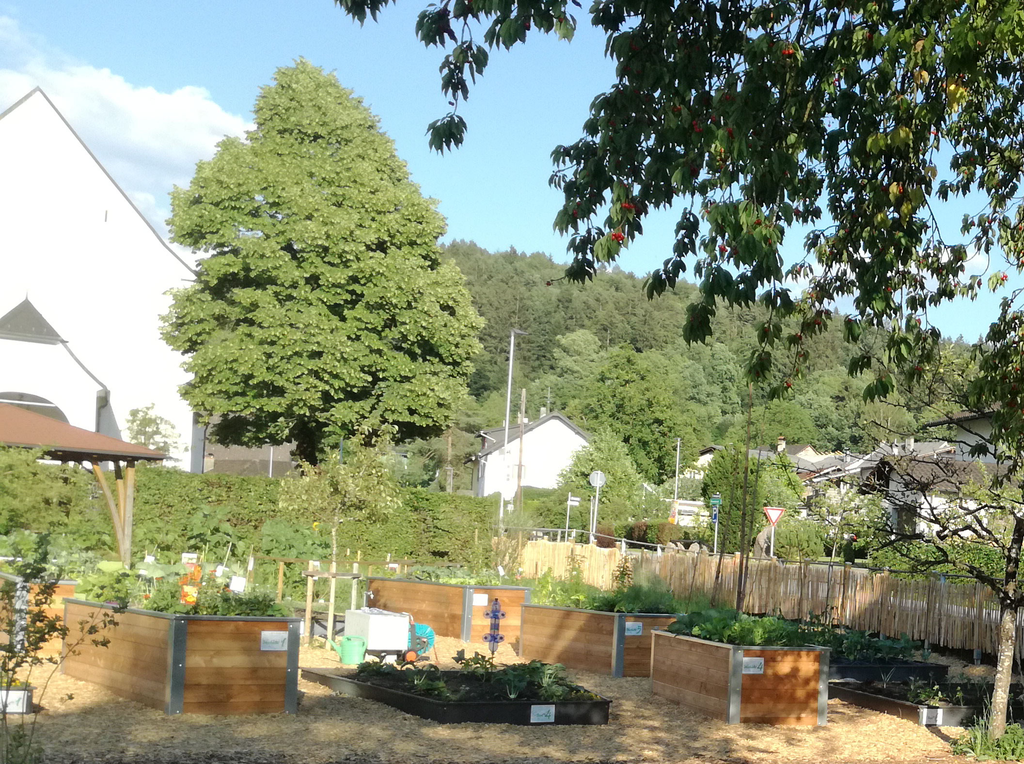 Verwirklicht wurde ein Garten für die Gemeinschaft auf einer Fläche von ca. 1.200 m² neben bzw. hinter dem Pfarrhaus in Schlins. Auf diesem Garten können nunmehr DorfbewohnerInnen, die keinen eigenen Garten haben oder ihren Garten erweitern möchten, Obst und Gemüse anbauen. Die Bewirtschaftung erfolgte begleitend durch den OGV Schlins. Ein wesentlicher Teil des Projektes stellt die Motivation sowie Integration von Institutionen, welche Kinder/Jugendliche betreuen, dar. Dies gelingt dadurch, als dass sie Kinder der Volksschule Schlins mit mehreren Klassen sowie Gruppen der Spielkiste Schlins Hoch- und Tiefbeete bewirtschaften und somit auch in den Unterricht / Betreuung integriert werden. Neben den Hoch- und Tiefbeeten werden Beerensträucher bewirtschaftet. Der Anbau erfolgte nach ökologischen Richtlinien. Der Wissenstransfer zu diesem Thema ist eine der wichtigen Aufgaben der Bildungsarbeit des Vereines.