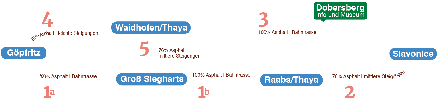 Zur Aufwertung und nachhaltigen Absicherung der Konkurrenzfähigkeit bedarf es jedenfalls auch einer optimalen Vernetzung der bereits bestehenden Radwege inklusive eines regionsweiten Beschilderungssystems – radtouristische Wegweiser, Schilder zu den Betrieben und Informations-/Übersichtstafeln bei den Informationsstellen in jeder Gemeinde. Ganz wichtig sind auch Informationsmaterialien wie Radkarte, Regionsbroschüre inkl. historischer Aufarbeitung des Themas „Bahn“.