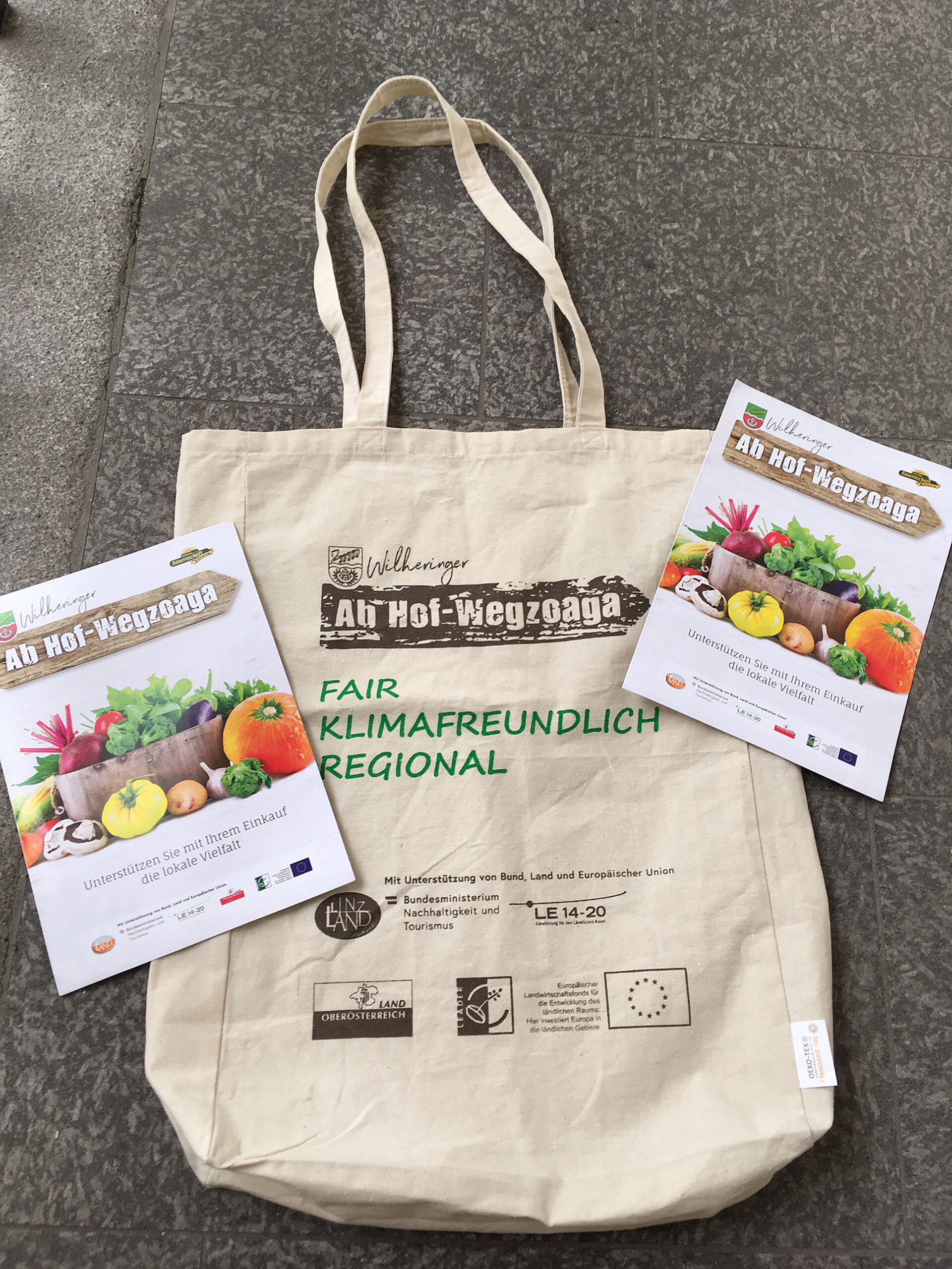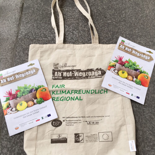 Der Wegweiser mit bäuerlichen Direktvermarktern, Nahversorgern, Imkerprodukten, aller Anbieter von heimischen Produkten bis hin zum Gemeinde‐Bierbrauer wurde in einer Anzahl von rund 3.000 Stück produziert und über die Gemeindezeitung an jeden Haushalt der Gemeinde Wilhering übermittelt. So konnte man erleben, dass erst viele GemeindebewohnerInnen auf Nahversorgungsangebote in ihrem unmittelbaren Lebensumfeld aufmerksam wurden. Auch die Initiative der Fair Trade Gruppe Dörnbach, der Ortsbauernschaft sowie der Gemeinde, entsprechend große und gutes Volumen fassende Jute Einkaufstaschen als Erstausstattung den Betrieben zu überlassen wird in der Gemeinde mit Begeisterung aufgenommen. Es wird ausdrücklich darauf hingewiesen, dass dies ein wertvoller Beitrag zur Plastikvermeidung sein soll und man spürt, dass diese Tasche ständige Begleiter der EinkäuferInnen werden. Von den Taschen wurden 1.500 angeschafft.