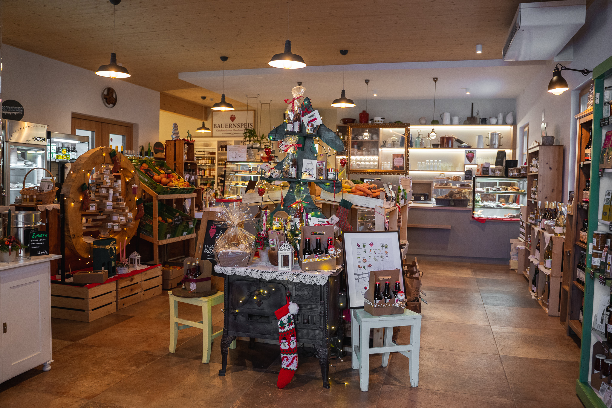 Inneneinrichtung Ab-Hof Laden inkl. Technik, Kühlung, Café 130.000,–