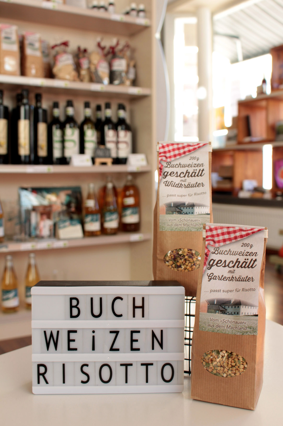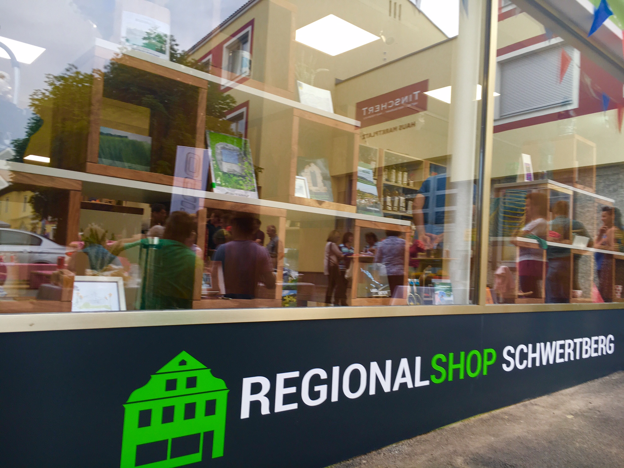 INVESTITIONEN:Es wurde auf eine neue, farbenfrohe Außenfassade – statt trostlosen, leeren Auslagefenstern – Wert gelegt. Die Innenräume wurden neu gestaltet mit (Auslagen-) Beleuchtung, Möbeln und Regalen. Die Wände wurden in einem freundlichen Ton gestrichen. Der Eingang wurde barrierefrei gestaltet. Eine Küche mit Geschirrspüler und Abwaschbecken wurde für die Abhaltung diverser Veranstaltungen eingerichtet. Eine automatisierte Markise dient als Sonnenschutz für Produkte in der Auslage. Im WC-Bereich wurde eine Wickelmöglichkeit etabliert. Weiters wurde hilfreiche und benötigte Gastro-Infrastruktur angeschafft – Registrierkasse, Kühlschränke, Geschirrspüler, Spüle. Zur Bewerbung des Regionalshops wurde eine Infobroschüre entworfen.