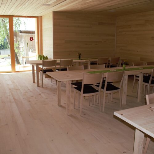 Der Seminarraum wird auch vor allem an Vereine, Firmen etc. vermietet, für Seminare, Tagungen, Workshops usw., wobei wir die Verpflegung, vor allem mit hofeigenen Milchprodukten und Bio-Vollmilchkalb anbieten. Der Seminarraum mit Blick auf unverfälschte Natur bietet den Besuchern Natur pur und Inspiration. Im Bioladen werden neben den eigenen Erzeugnissen auch regionale Lebensmittel von der Umgebung angeboten, die ebenfalls nachhaltig und klimafreundlich produzieren. Unsere Räume sind hell, freundlich und aus eigenem, unbehandeltem Weißtannenholz.