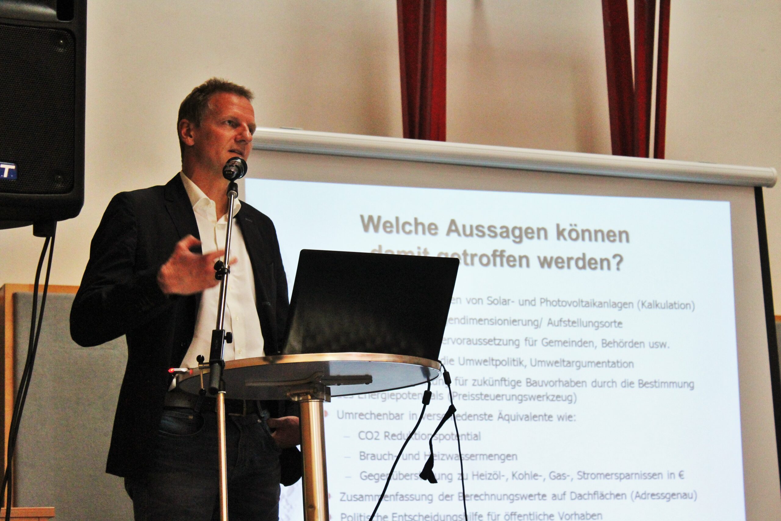 Außerdem wurde neben Sensibilisierungsmaßnahmen der Geschäftsführer der Laserdata GmbH Dipl.-Geogr. Frederic Petrini-Monteferri als Vortragender (Experte für Solarpotential) engagiert, welcher im Rahmen des „PV-Tages“ die Ergebnisse und deren Anwendungsmöglichkeiten vorstellte sowie für einzelne Informationsgespräche zur Verfügung stand.