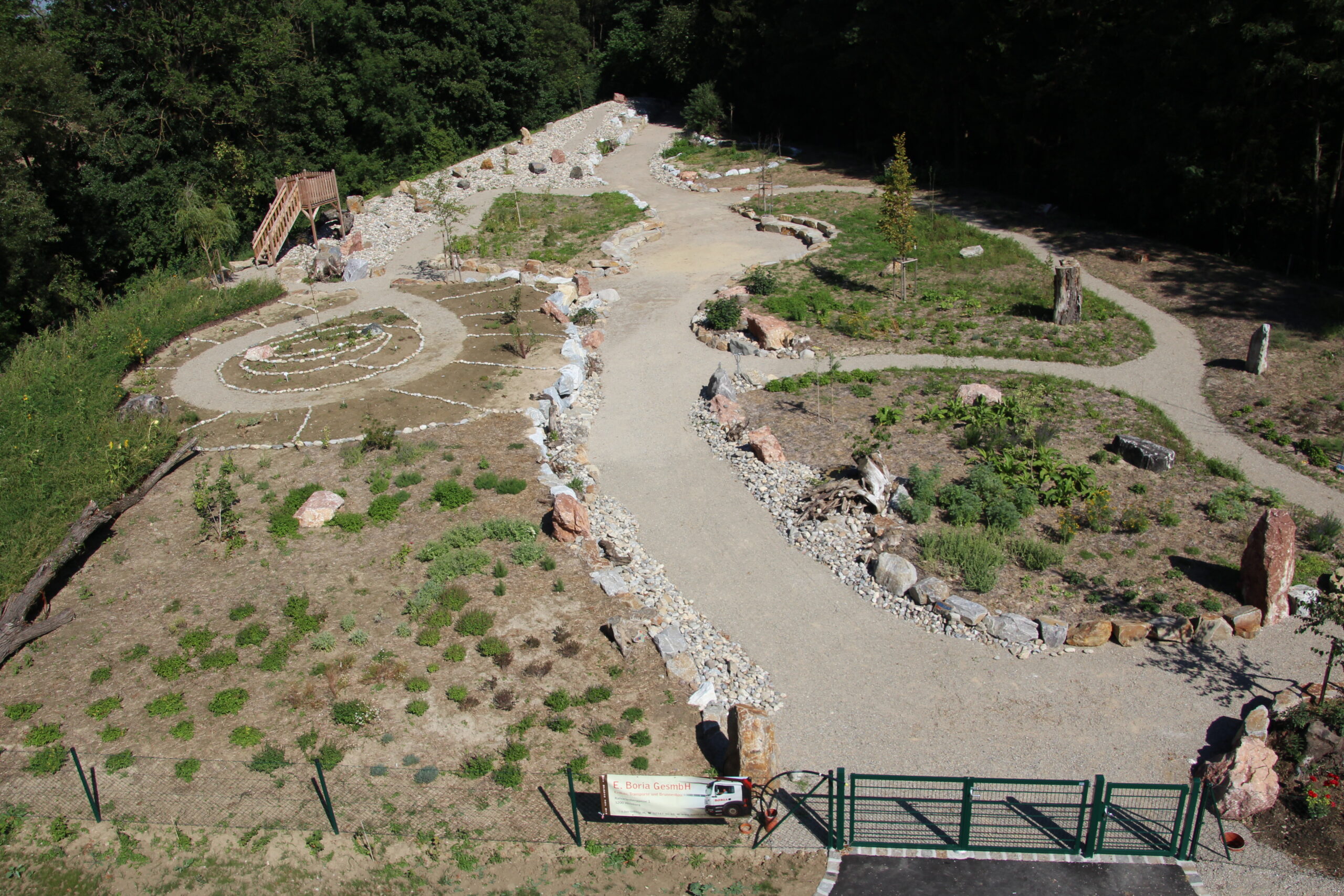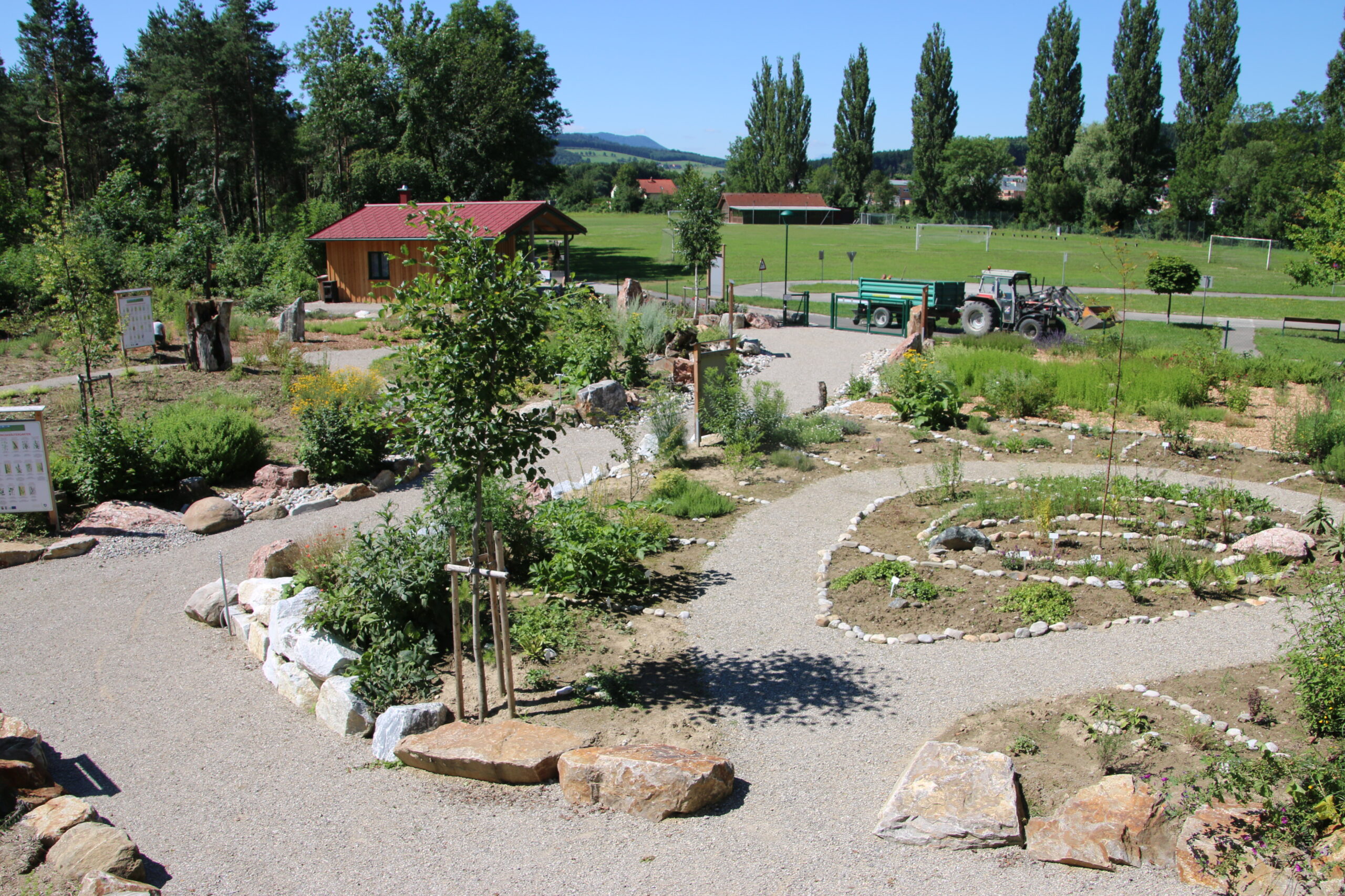 Zur Präsentation sowie für Bildungs- und Kulturveranstaltungen wurde im Zentrum ein Steinkreis in Manegeform errichtet sowie die Anlage eingezäunt, um Wildverbiss zu vermeiden. Die Anlage ist allerdings grundsätzlich jederzeit für Alle geöffnet. Die neu errichtete Kräuterhütte dient einerseits als Schulungsraum und andererseits auch als Produktionsstätte für div. Kräuterartikel (Salben, Teemischungen, …)