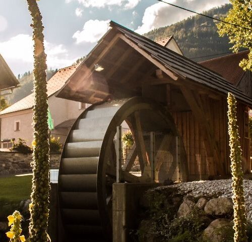 Ein Wasserrad ist eine Wasserkraftmaschine, die die potentielle oder kinetische Energie des Wassers nutzt, um z.B. Mühlen, Hammerwerke, Radwerke, Generatoren oder Schöpfwerke anzutreiben. Die Erfindung des Wasserrades im 4./3. Jahrhundert v. Chr. stellte einen Meilenstein in der Entwicklung der Technik dar, da durch die Nutzung der Wasserkraft mechanische Energie nutzbar gemacht werden konnte.Auch für unsere Region war und ist diese Thematik von historischer und wirtschaftlicher Bedeutung. Aufbauend auf den Erfahrungen des im Jahr 2012 errichteten oberschlächtigen Wasserrades beim Bauernhaus Panzer am Wöllbach in der Gemeinde St. Georgen ob Judenburg sollen hier ein Mühlen- Museum und ein touristisch attraktives Demo-Wasserrad für Wirkungsgrad- und Betriebsmessungen errichtet werden.