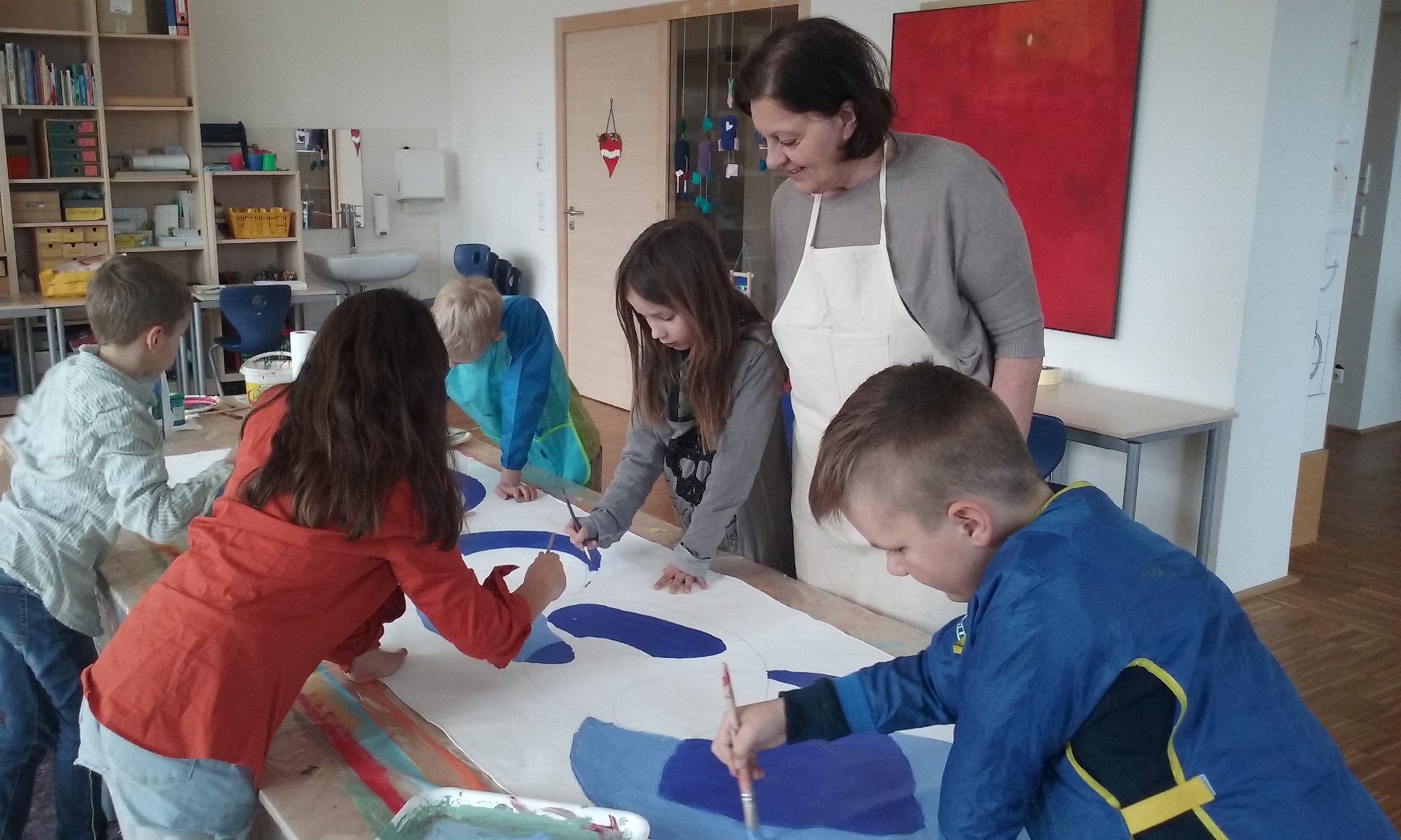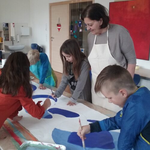 „Wir sind Bruckner“ ‐ das Projekt umfasst eine Annäherung der Kinder an Bruckner in der ortsansässigen Kirche, indem die Orgel an der Bruckner spielte, seine Person und seine Musik den Schüler*innen durch eine Fachkraft, nähergebracht werden soll. Seine Lebensgeschichte wird im Klassenzimmer weiter betrachtet. (im Rahmen des Unterrichts außerhalb des Förderprojekts)Darauf folgt eine Projektwoche in der mit der Künstlerin Ingrid Wieser klassenweise zur Musik Anton Bruckners unter Mithilfe der Lehrkräfte acht Fahnen bemalt werden, die später unter dem Vordach der Schule angebracht und so der Öffentlichkeit präsentiert werden.