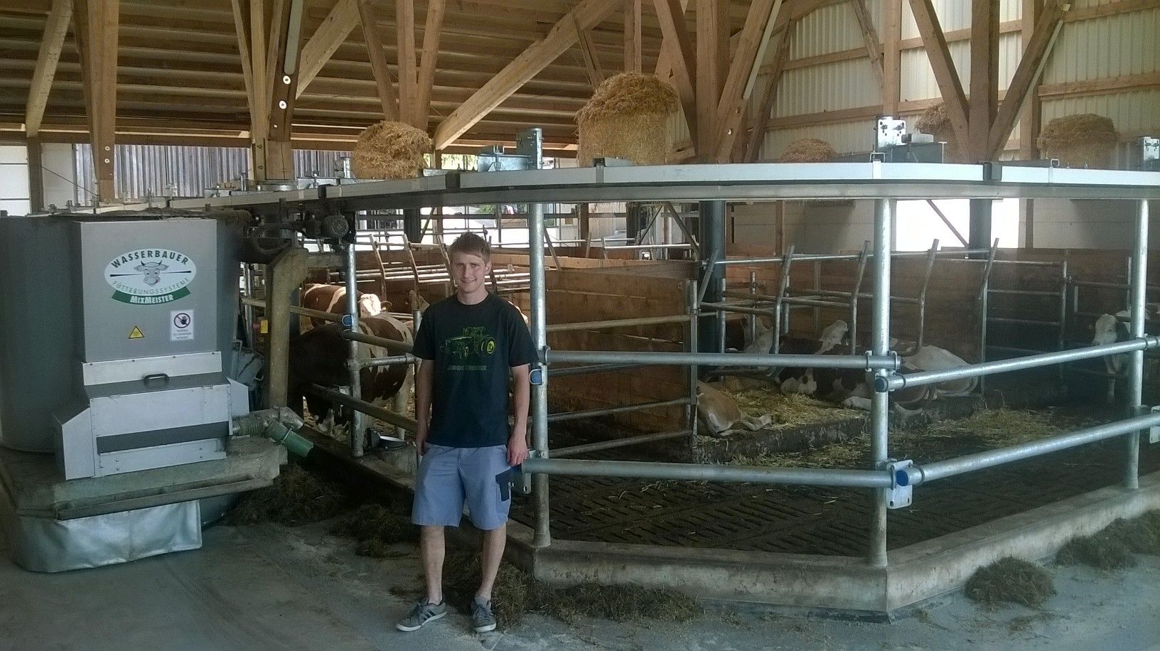 Unser Betrieb ist seit jeher in der Milchproduktion tätig und hat sich auch in den letzten Jahren darin stark spezialisiert. Dazu wurde 1997 ein neuer tierfreundlicher Milchviehlaufstall errichtet und im alten Stall wurden nach den Umbauarbeiten die Kalbinnen untergebracht. Der bestehende Laufstall aus dem Jahr 1997, bietet Platz für rund 40 Milchkühe. Da auch die Futterflächen in den letzten Jahren immer mehr wurden, sowohl gekauft als auch gepachtet, wurde 2010 ein Rindermaststall für rund 30 Masttieren an den Bestehenden Milehviehstall angebaut und eine entsprechende Güllegrube errichtet. In diesem Zuge wurde für den bestehenden Milchviehstall und den Rindermaststall ein Fütterungsroboter installiert. Der Rindermaststall wurde so errichtet, dass er zu einem späteren Zeitpunkt in den Milchviehstall eingebunden werden kann. Seit dort wird am Betrieb die gesamte Nachzucht aufgezogen. Mittlerweile werden am Betrieb rund 115 Tiere gehalten, sprich 40 Milchkühe und die gesamte Nachzucht. Die Milch die am Betrieb produziert wird, wird über das bayrische Milchwerk Jäger vermarktet.Um den Tierbestand zu versorgen bewirtschaften wir rund 76 ha Nutzflächen. Diese unterteilen sich in 27 ha Ackerflächen und rund 49 ha Grünlandflächen, wobei von den 76 ha rund 37 Hektar nicht in unserem Eigentum stehen. Die Flächen liegen zum Großteil arrondiert um den Betrieb und ein weiterer großer Teil der Flächen liegt in rund 10 Kilometer Entfernung. Die Maschinen zur Bewirtschaftung unserer Flächen besitzen wir selber bis auf eine Einzelkornsämaschine und einen Maishäcksler. Um die Maschinen, die durch die Bank in einem sehr guten Zustand sind, auszulasten, werden diese auch überbetrieblich eingesetzt. Dies betrifft vor allem den überbetrieblichen Mähdrusch und das Rundballenpressen. Der überbetriebliche Maschineneinsatz nimmt während der Sommermonate einen erheblichen Teil der Arbeitszeit ein, ist aber auch ein kleines Einkommensstandbein auf unserem Betrieb.